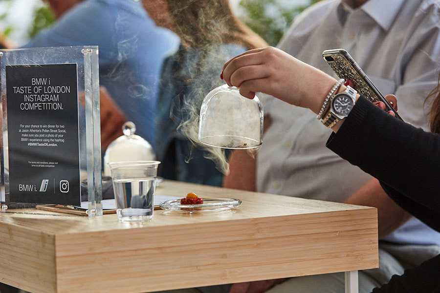 Instead of using existing platforms we challenged the brand with a new, unexpected partnership and turned up at Taste of London where we invited guests to join us for a 'taste drive'. For the first time, guests were able to explore the new car via their taste buds that took them on an edible journey to explore all the cars key features. Partnering with Bubble Foods we created a flavour filled journey through a four-course tasting menu inspired by BMW i's four key brand pillars: sustainability, innovation, visionary and design.