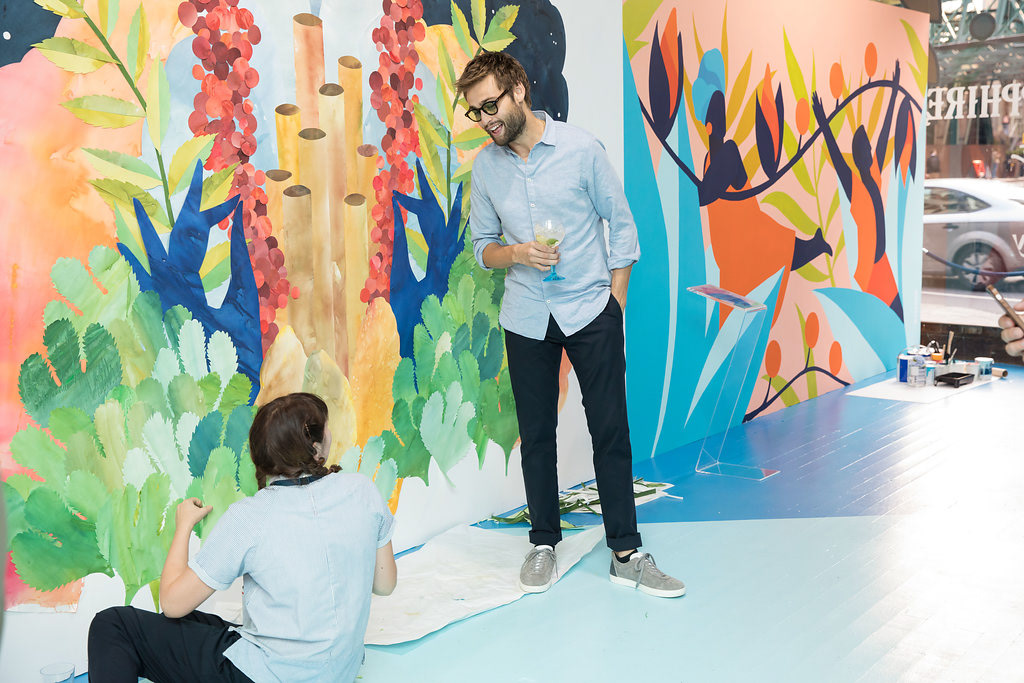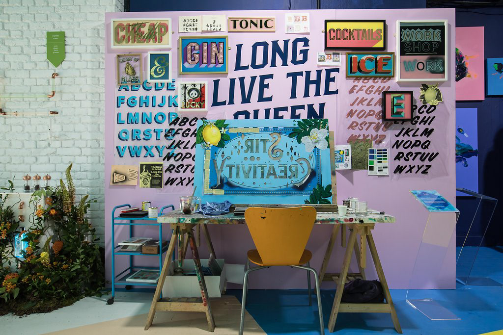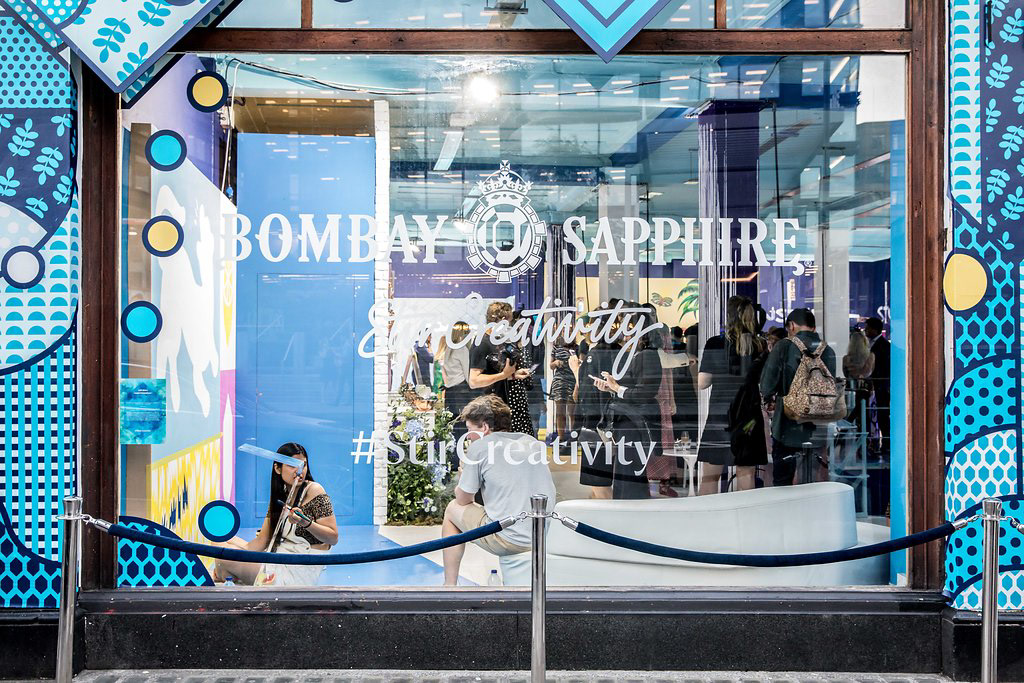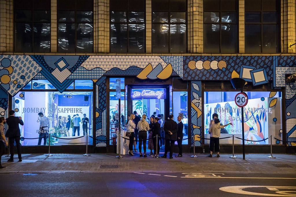 Each of the artists took over a blank space in the Shoreditch venue to creatively express Bombay Sapphires 'Stir Creativity' theme. For the first time, guests entered a 'work-in-progress' space where they were able to witness the artists creative process rather than arriving at a perfectly finished pop-up.
