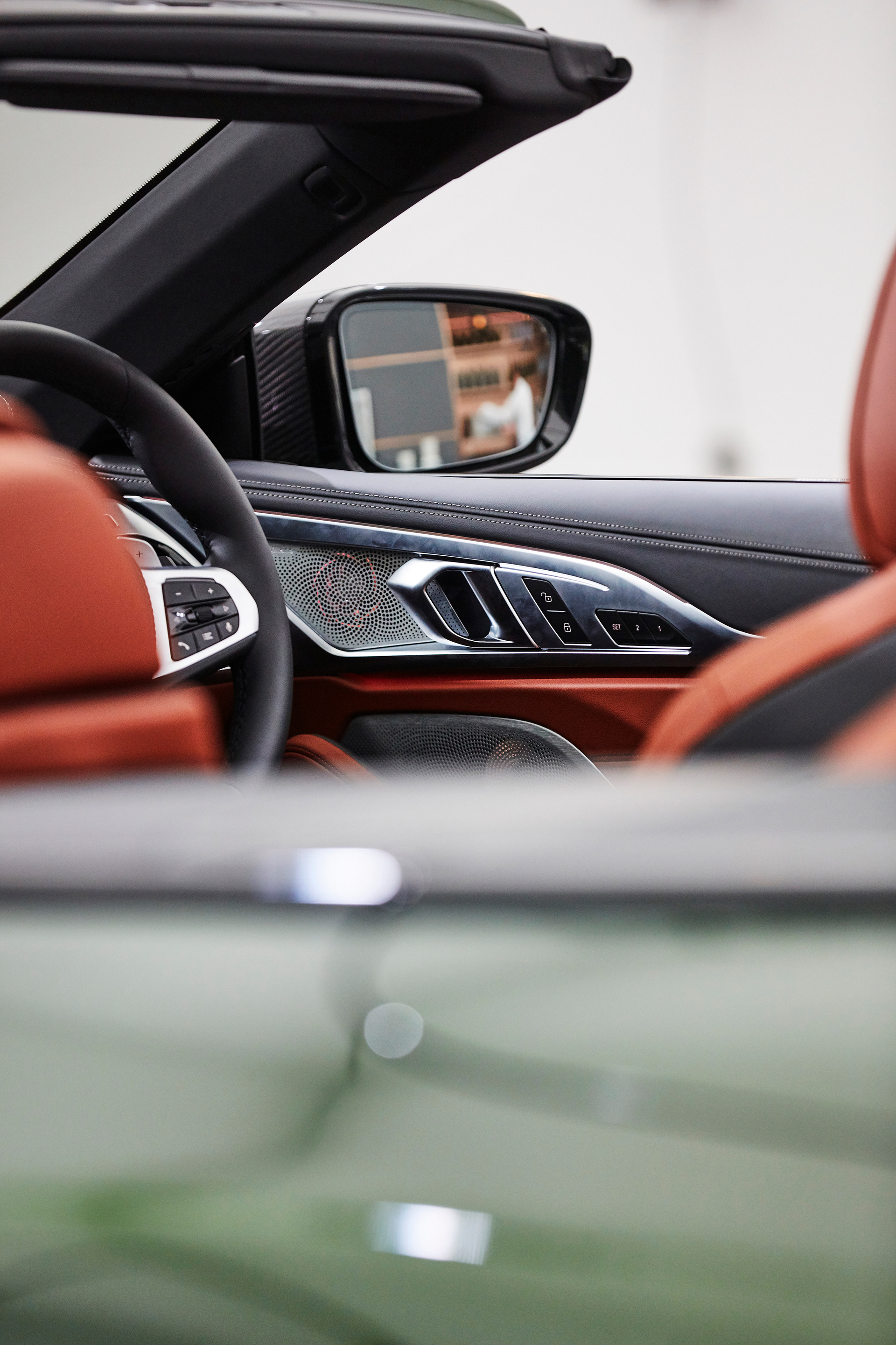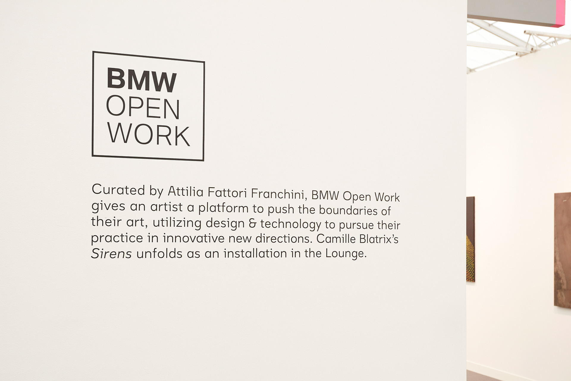 The space was developed around the artists immersive sculpture titled 'Sirens' – a complex multipart installation involving sound, light and a dialogue with a BMW car.