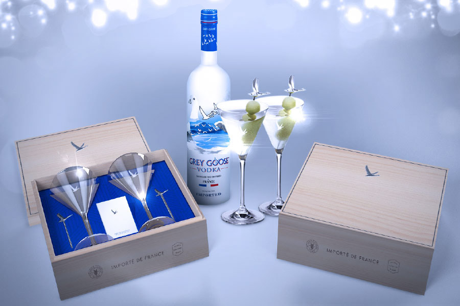 The solution was a beautiful brand destination inspired by the campaign featuring Grey Goose product sampling and unique customisable gift boxes. With each bottle purchase, customers were able to craft a personalised message to get it live stencilled onto a wooden box alongside branded cocktail vessels, a recipe booklet and stirrers to recreate the perfect Grey Goose cocktail at home.