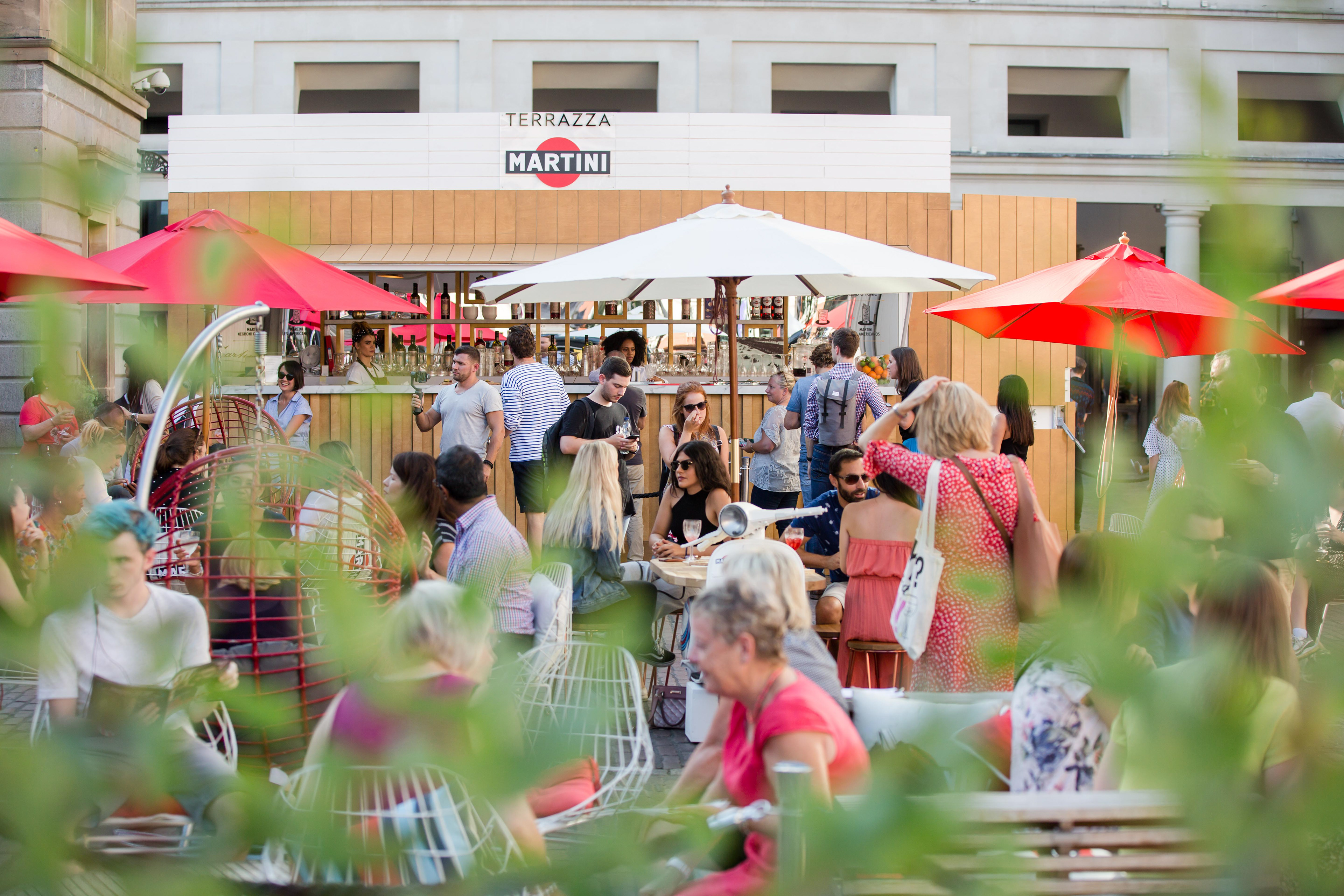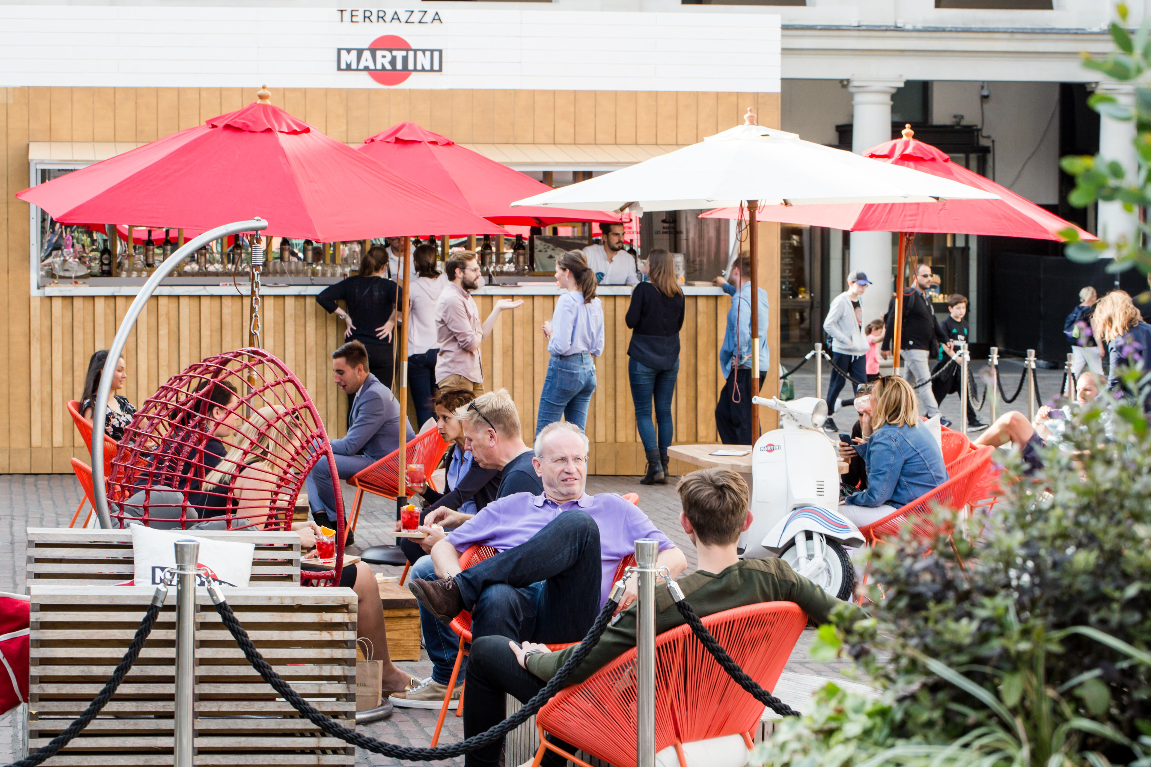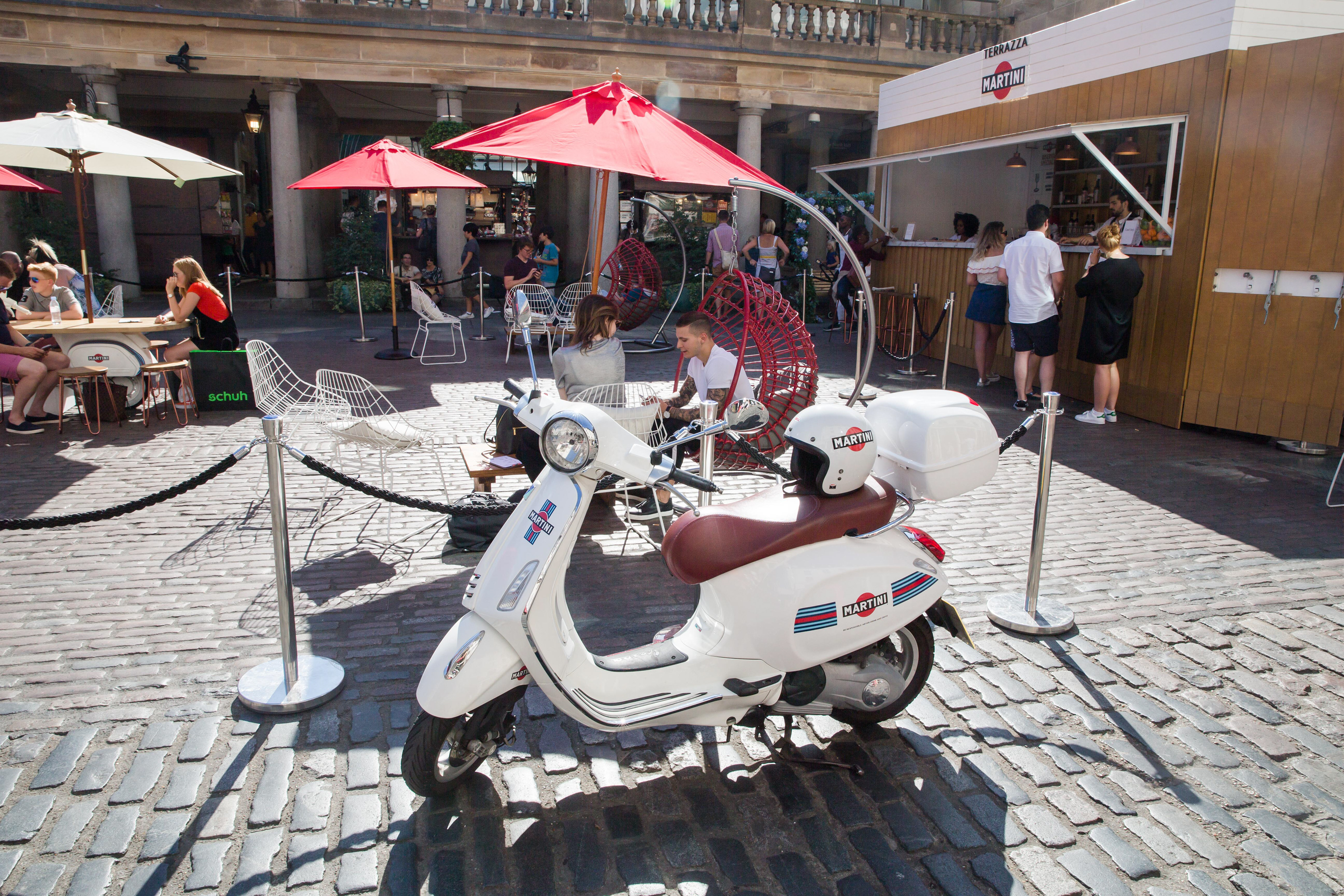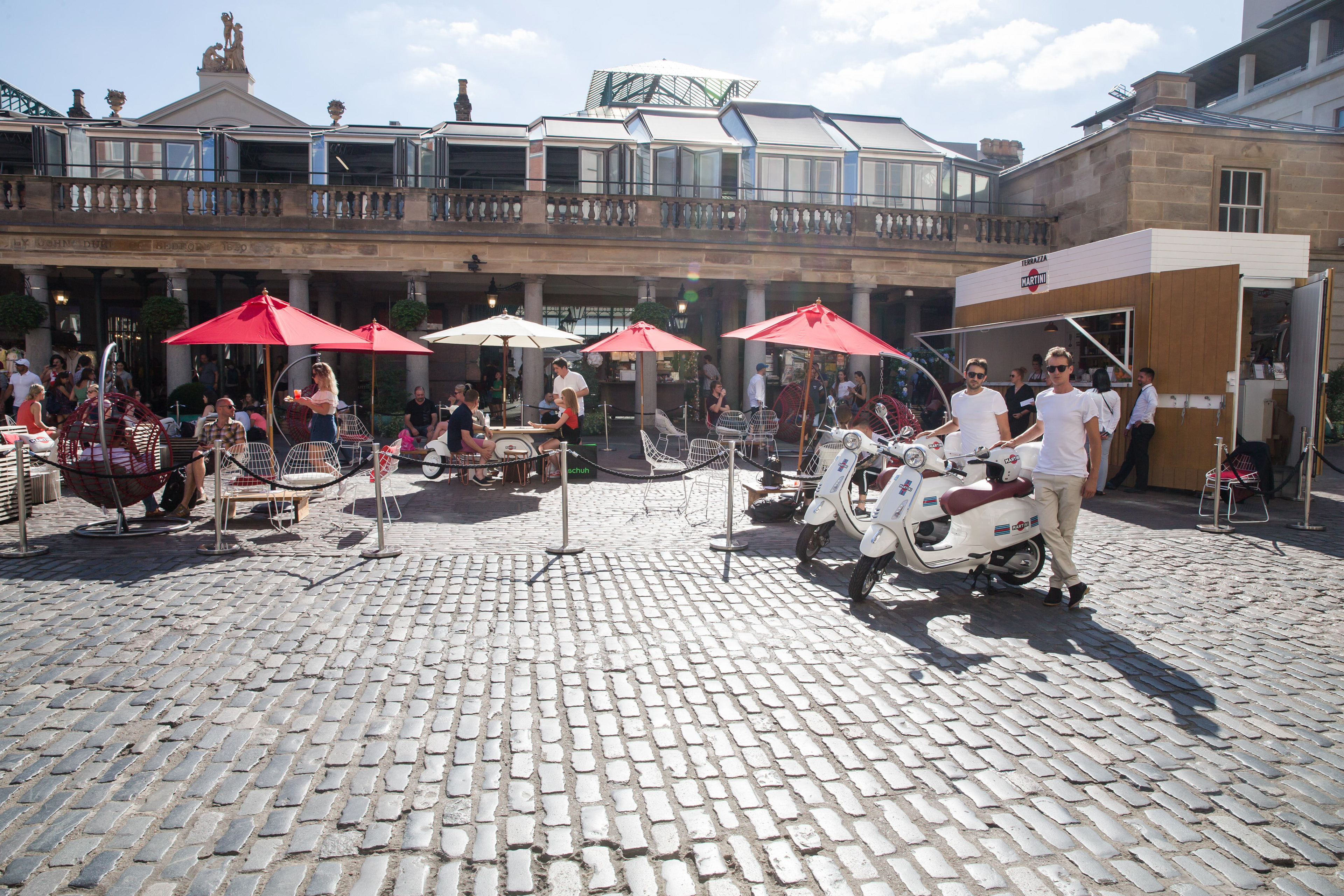 To celebrate Italian friendship, we brought the iconic Terrazza Martini to London for a 4-week pop-up on Covent Garden's piazza. In a bid to bring the relaxed way of life to Londons busy city centre, the space was transformed into an Italian sanctuary complete with iconic scooter seats and a Martini bar, where guests were able to celebrate the aperitivo hour with their friends while enjoying delicious Martini cocktails and complimentary aperitivo plates.